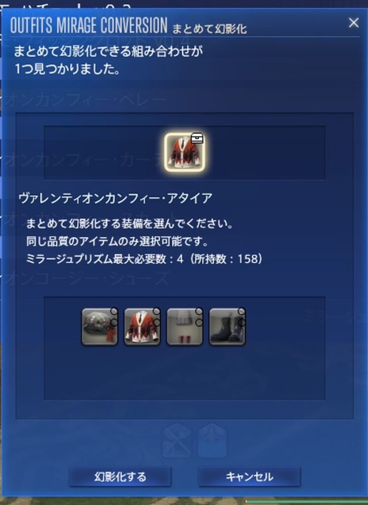 2種類ともまとめて幻影化しようとするとブーツは2つ交換する必要がありますっ