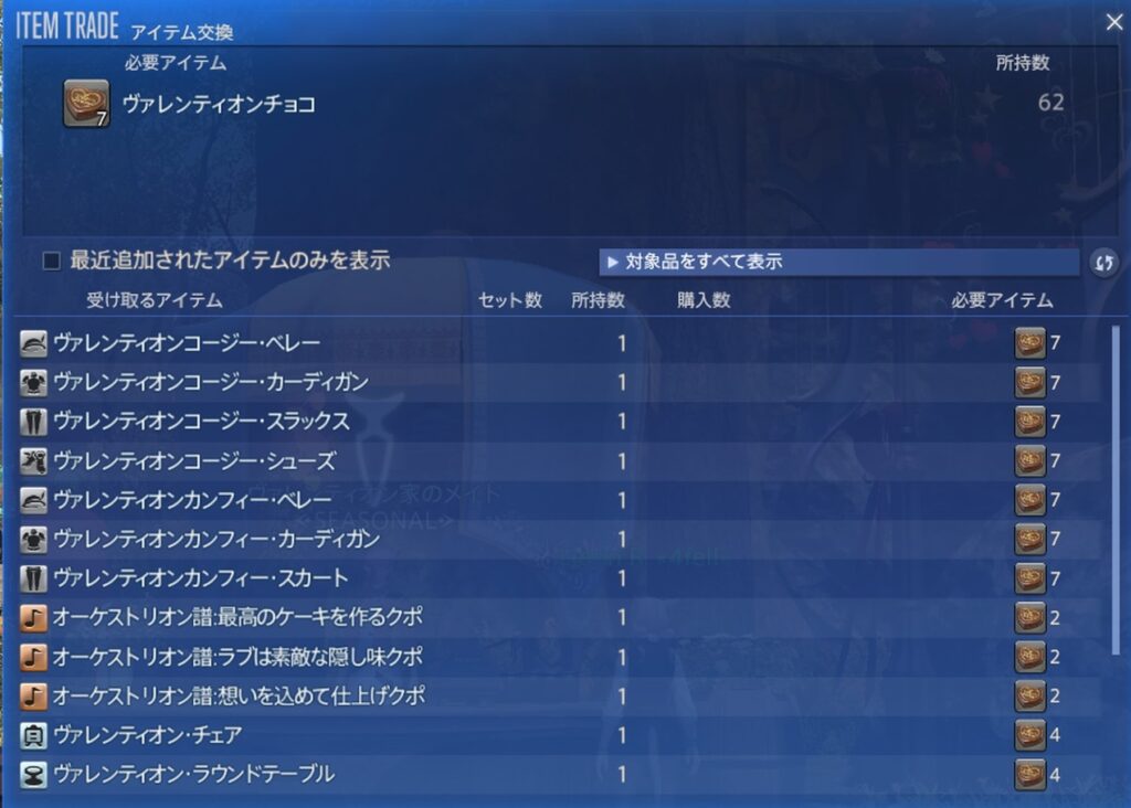 ヴァレンティオンチョコと交換することで入手できますっ